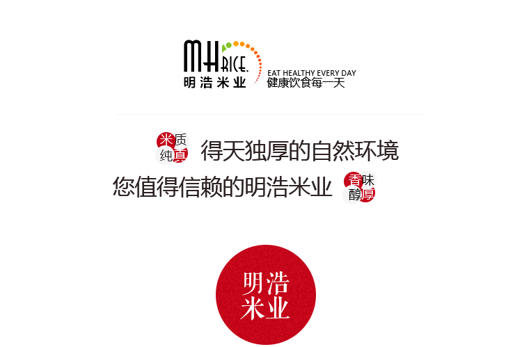 明浩米业依托得天独厚的自然环境,建立起集加工、仓储、销售为一体的现代生产模式,成立多年来,瑞丰人凭借朴实做人、真诚经商的理念,锐意进取,在众多大米企业中脱颖而出。具有大型生产大米的精加工设备进行深加工,生产大米系列产品具有米质纯真